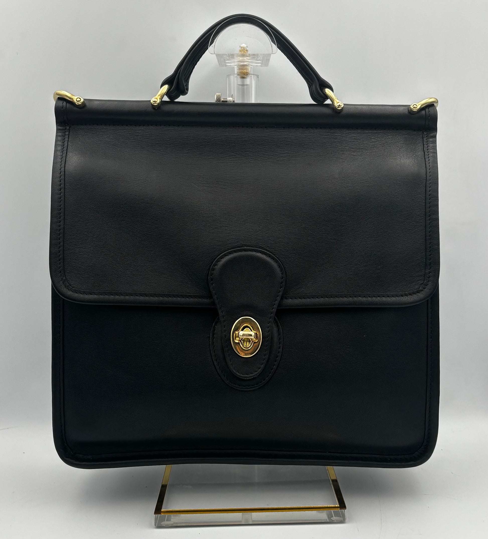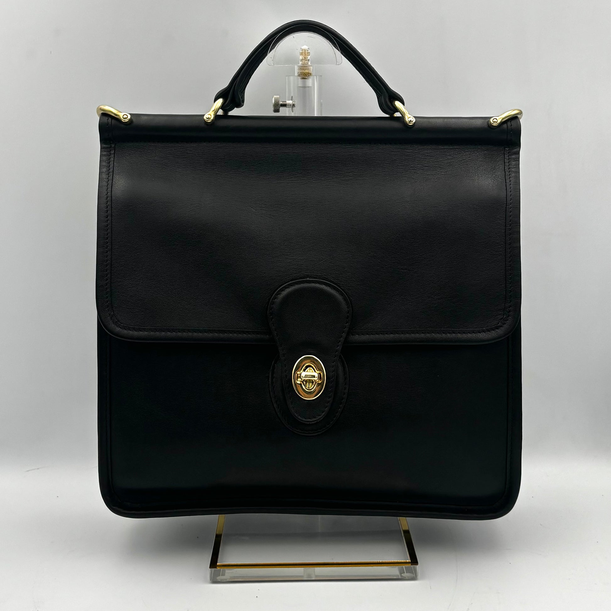 This authentic vintage Coach Willis Bag (style 9927) is one of the most iconic and sought after styles from the 1990s Legacy Collection. Crafted in rich black glove-tanned leather with solid brass hardware, it features Coach’s signature turn-lock flap and a sturdy leather top handle with a hidden wooden dowel. Originally introduced in 1993, the Willis has become one of Coach’s most coveted vintage styles - not only known for its sleek style, but also for its durable craftsmanship guaranteed to last a lifetime.