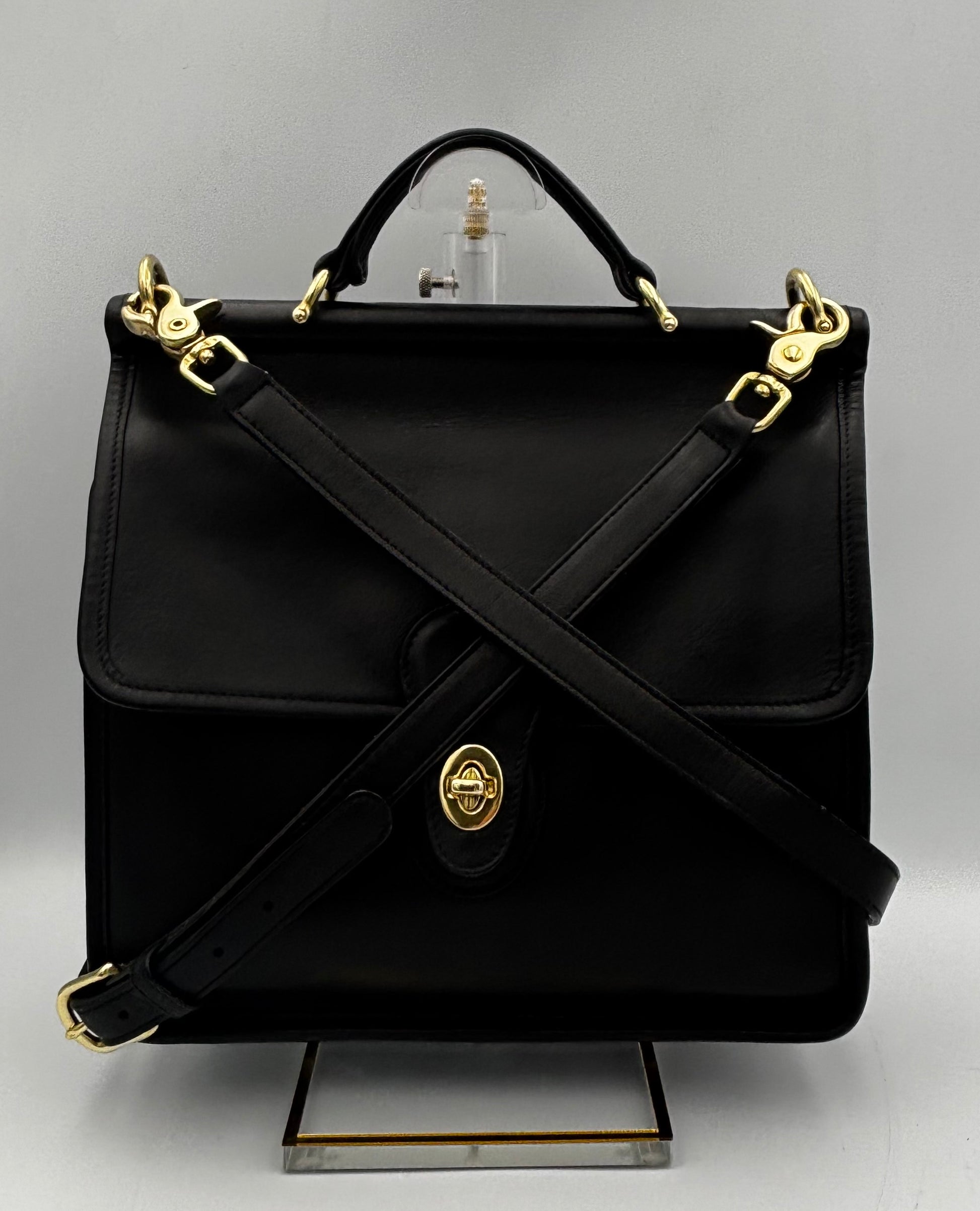 Vintage Coach Willis Bag | Style 9927 | Black Leather Top Handle Satchel | Rare 1990s Legacy Crossbody Purse