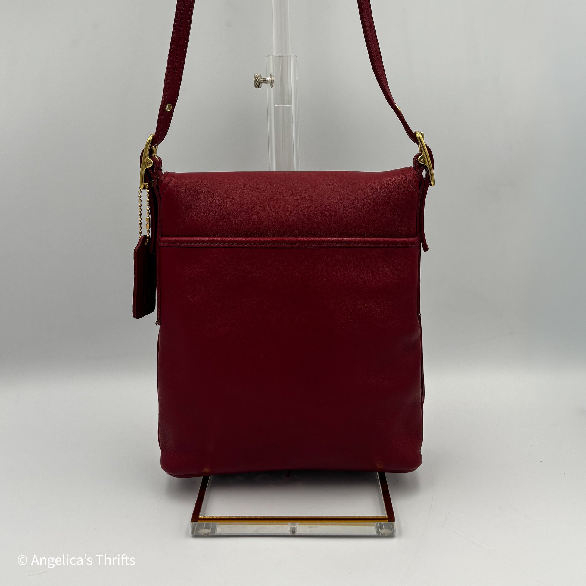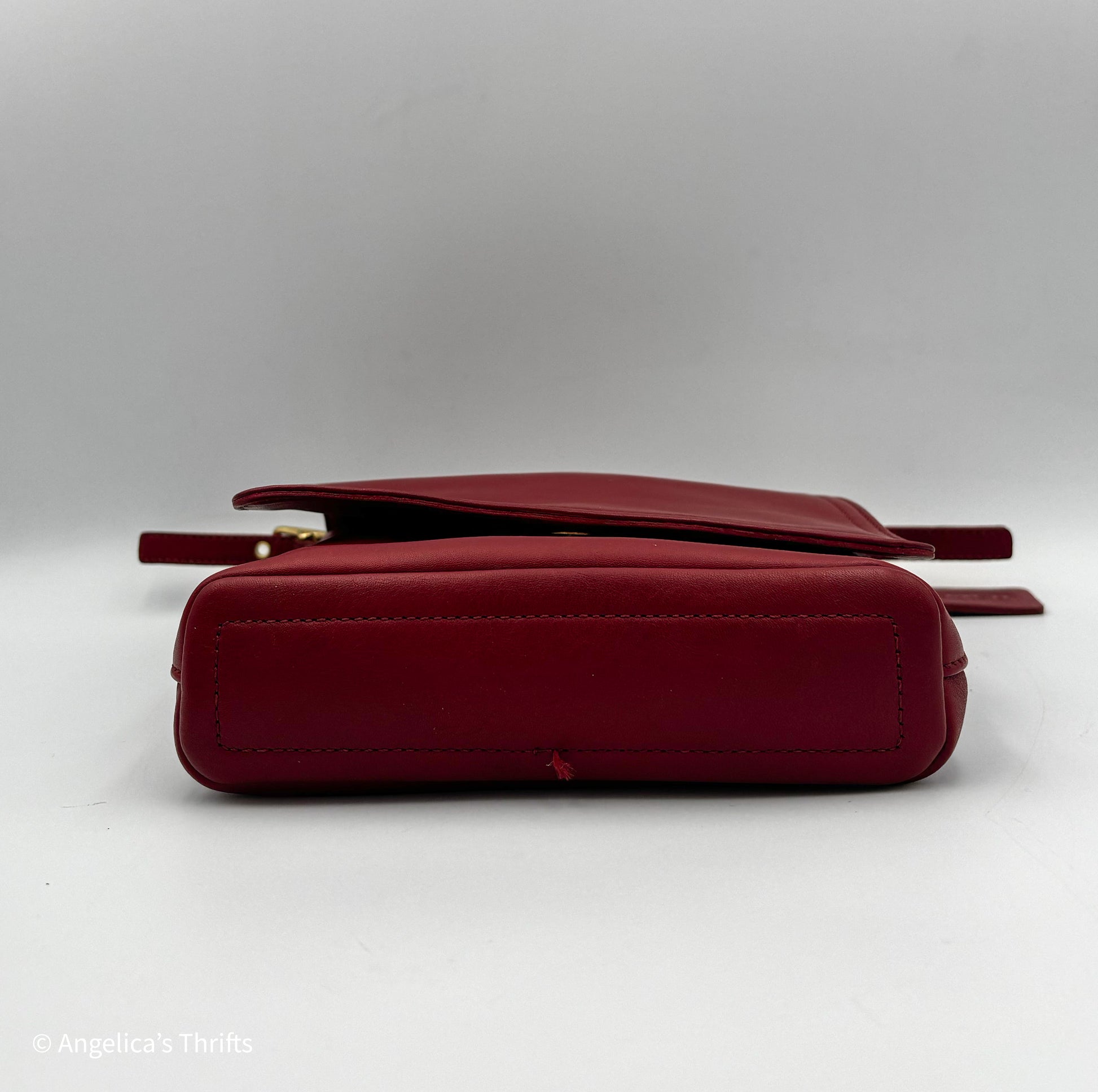 This vintage Coach Legacy Slim Flap Bag (style 9821) is crafted in rich red glove-tanned leather with solid brass hardware. A classic early-1990s Coach design, the Legacy Slim Flap is known for its slim, vertical shape making it compact and perfect for every occasion.